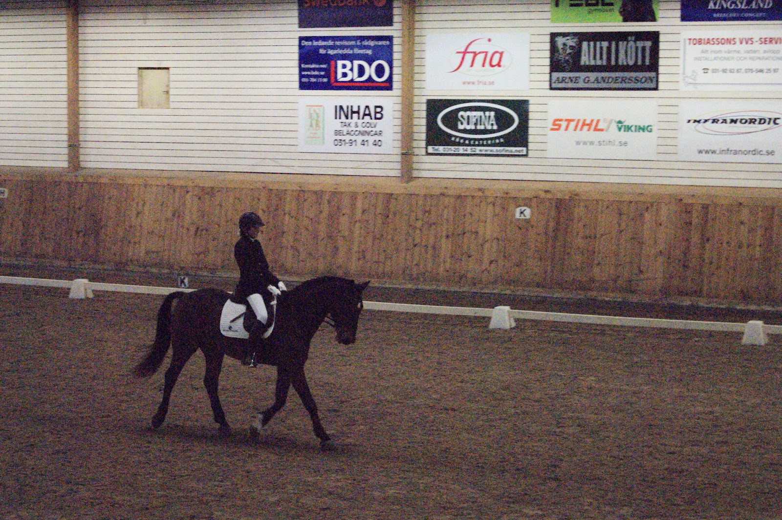 Idag så jobbade vi med galoppombyten på lektionen, över bom då. Fast eftersom att Linus är den enda häst på ridskolan som byter på kommando så satt bytena över bom klockrent så vi fick öka svårighetsgraden lite och jag skulle byta en bit innan. Då blev det genast lite svårare, först så fattade han inte riktigt och drog iväg lite och bytte över bommen istället och andra gången bytte han bara fram först och sen bak över bommen. Men det kändes bra ändå. ;) Hans nya nosgrimma hade jättefå hål så nosgrimman satt jättelöst så han var lite extra stark och lite "gapig". (Gjorde nya hål efteråt.) Men det var ett ok ridpass, emellanåt var han superfin dock var han lite svårare att få loss i vänstersidan idag då han var väldigt pigg. Men det kan ju inte alltid gå helt perfekt, jag är nöjd ändå. ;) På söndag ska jag rida programträning, det ska bli kul! :D